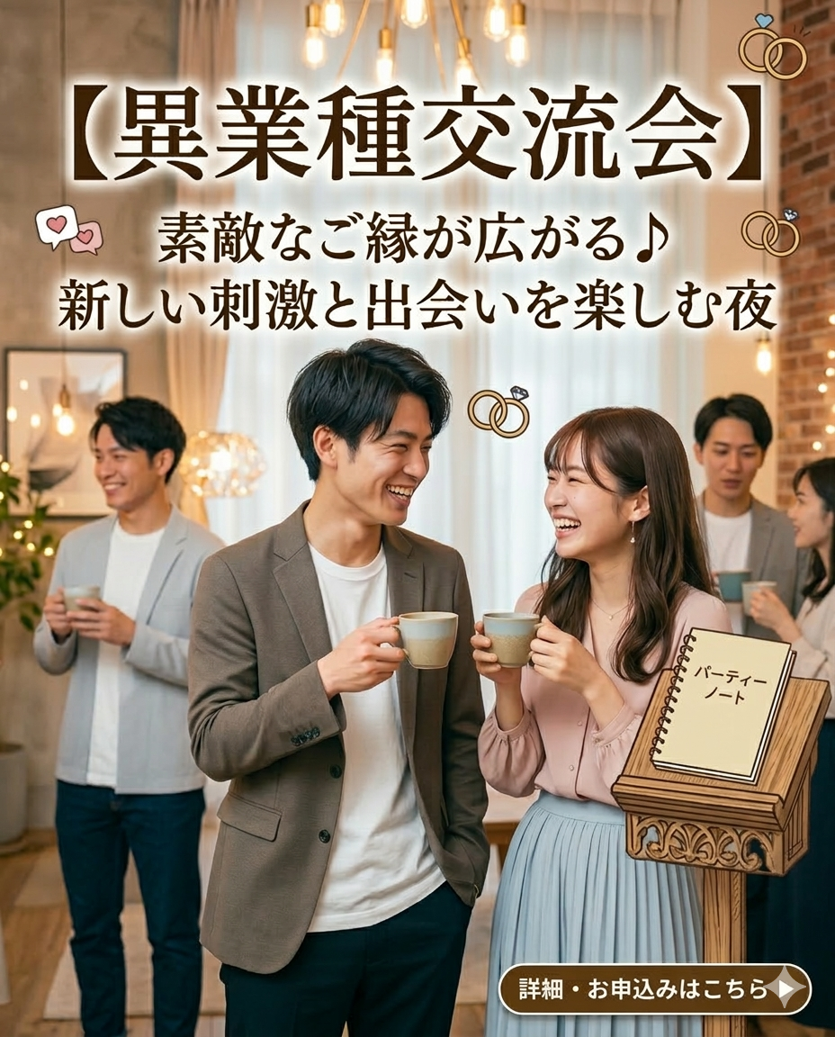 男性 20歳〜39歳 ¥いまだけ早割!6900円【通常8900円】 女性 20歳〜39歳 ¥いまだけ早割!1500円【通常4500円】 宮崎市 06/27(土) 20:00〜 【異業種交流会】素敵なご縁が広がる♪新しい刺激と出会いを楽しむ夜 お食事&ドリンク付きのパーティー...