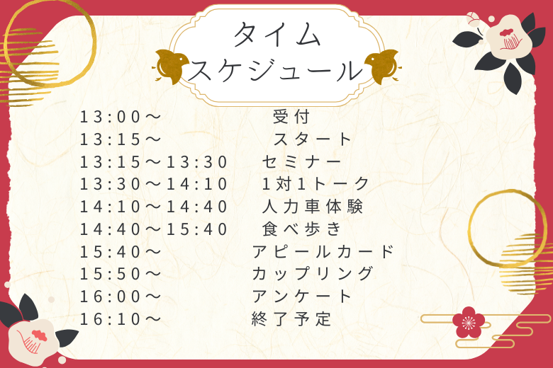 ※スケジュールは前後する可能性がございます。予めご了承ください。